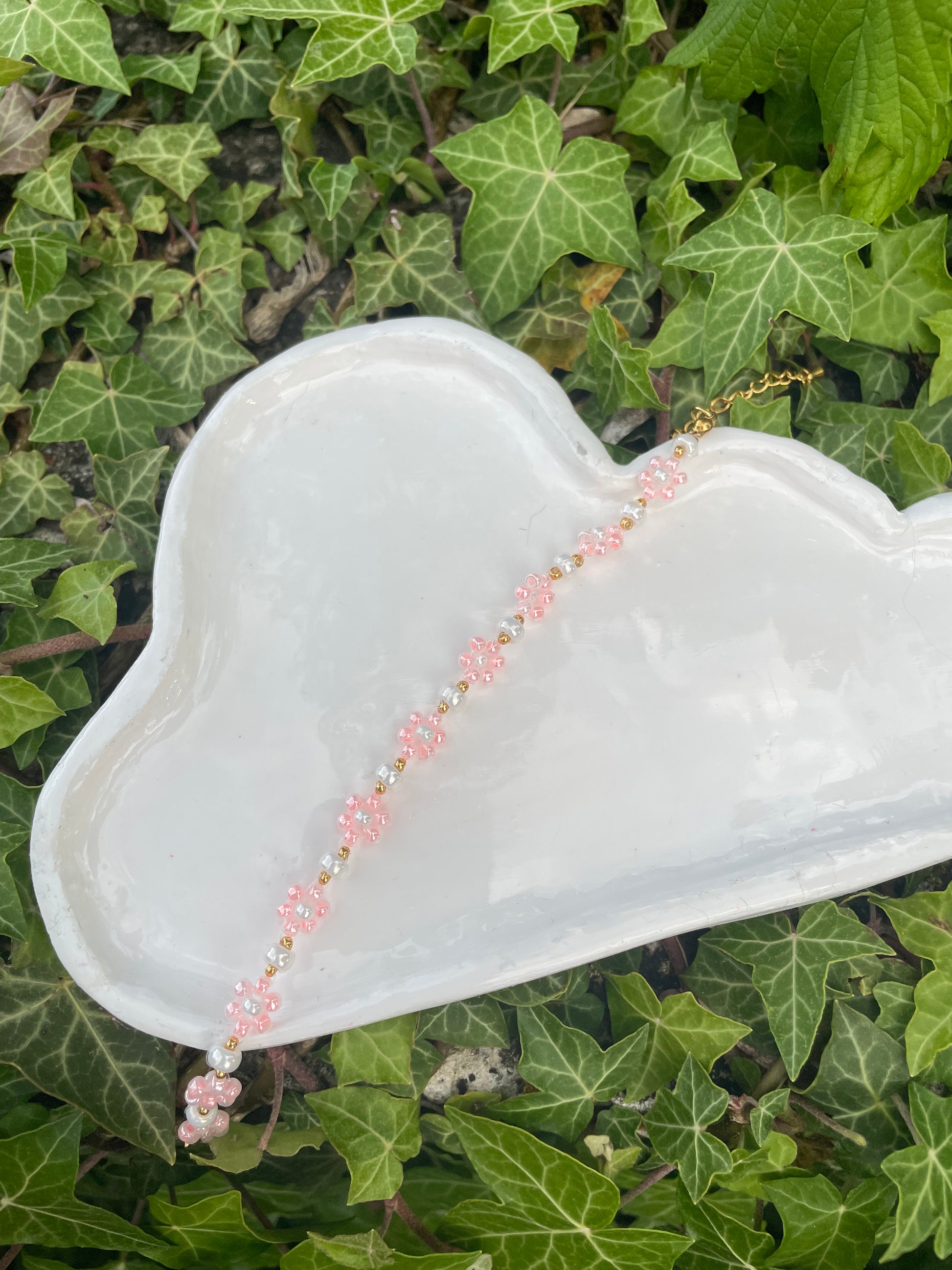 Ce bracelet il a été inspiré par les tonnes de dramas japonais à l'eau de rose que Lucia mattait durant son adolescence. Y avait toujours une scène où comme les deux perso principaux se retrouvaient devant un cerisier en fleur pile poil au moment ou un coup de vent faisait provoquer une chute de jolis pétales... Après on se demande pourquoi elle est si fleur bleue. Elle a été biberonnée aux clichés romantiques !
